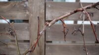 ブドウの萌芽って低い場所から始まりますが、それにしてもこんな低い場所から萌芽されるとちょっと困ります。もちろんこういうのは早い段階で剪定しちゃうんですが、ブドウの成長スピードはほんとうに早いので、放っておくとあっという間に余分な新梢だらけになっちゃいます。この時期は気候も良くて絶好の成長時期ですから、その勢いを無駄にしないためにもマメなお世話が必要となるのです。